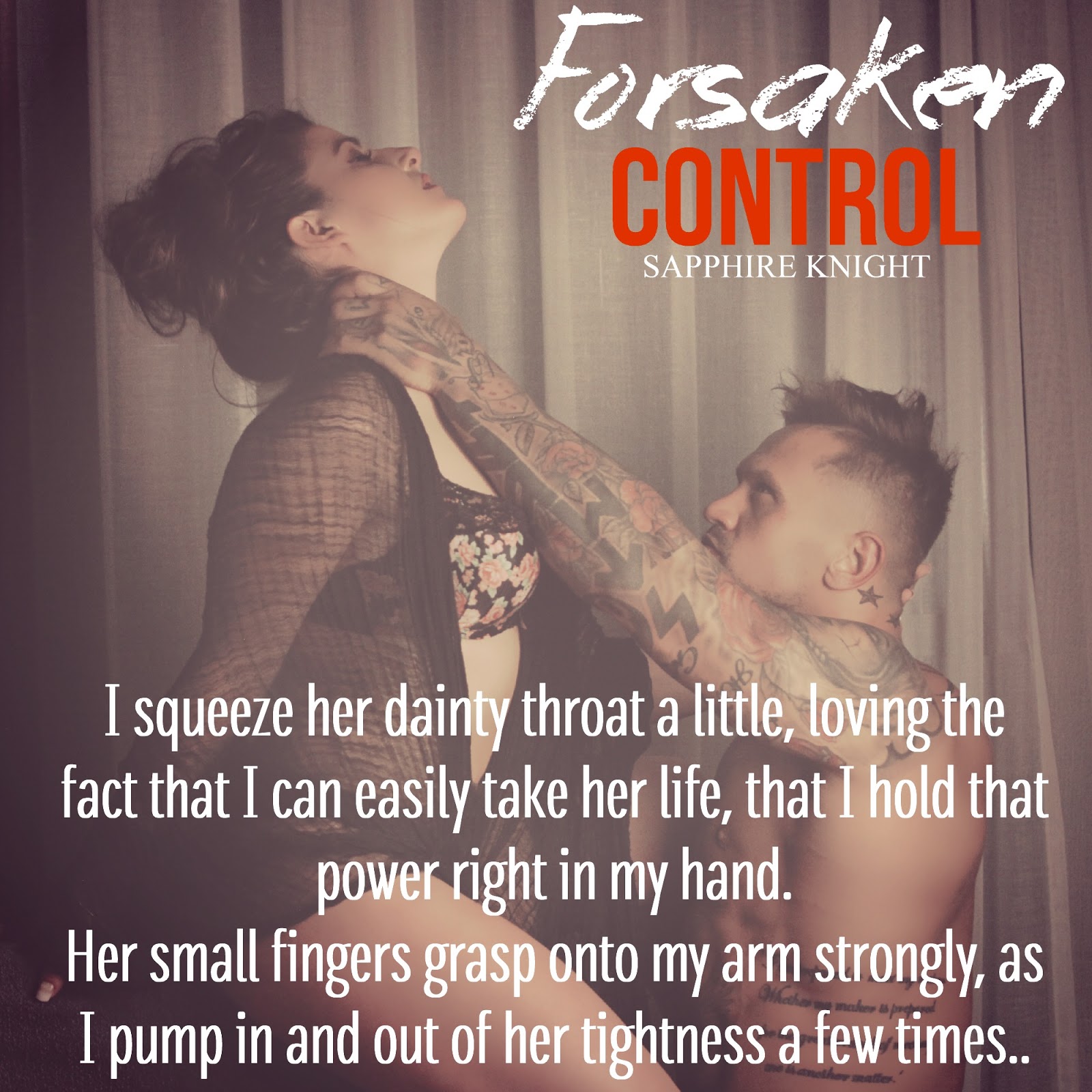 Sapphire Knight is the author of Secrets, Exposed, Relinquish and Corrupted – Available on Amazon, Kobo, iBooks and Google Play.She’s currently working on an MMA fighter book, Twist, Nikoli and Ares stories (Unexpected Forfeit, Friction, Unwanted Sacrifices and Forsaken Control). Her books all reflect on what she loves to read herself.
